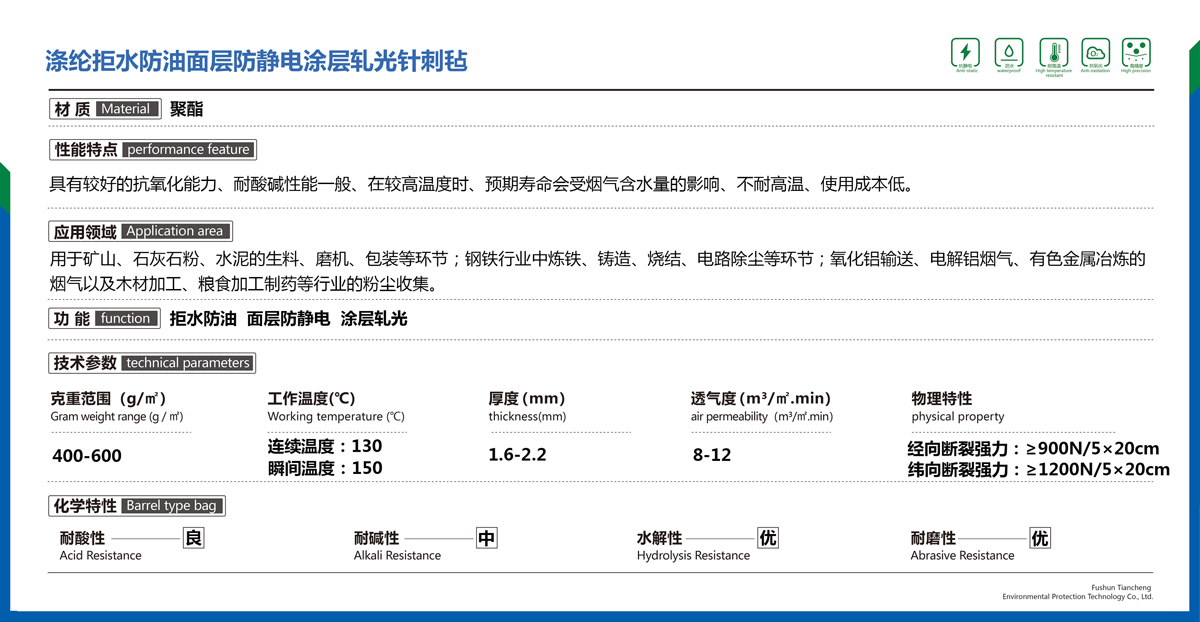 滌綸拒水防油面層防靜電涂層軋光針刺氈